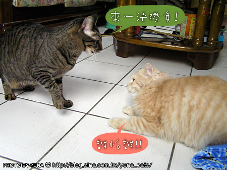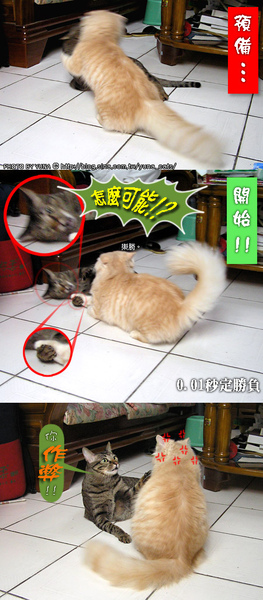 自信滿滿的小隻對飛踢下戰帖各就各位.......所以說勝負要有運動家的精神.......不然可是會受報應的= =