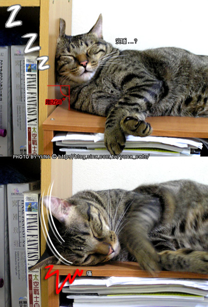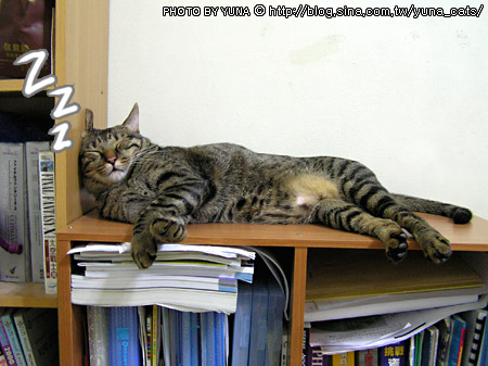 這樣睡會舒服嗎?活該...臭妹非常喜歡在書櫃上睡覺尤其喜歡脖子騰空的姿勢不知道會不會『睡落枕』......= =