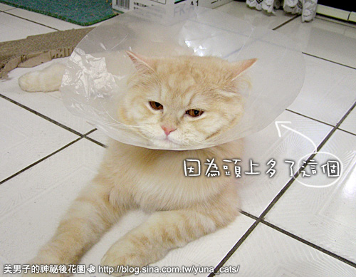 所以只好拿出三年前小隻結紮那時戴的又重又硬頭套讓他戴上