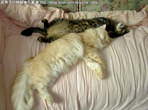 泥坎坎~泥坎坎~感情多好阿!!一起睡稿稿~~一起看到鬼~~一起排排坐吃果果~~誰說兩隻公貓就容易打架呢?這是互毆相親相愛!!咳咳..