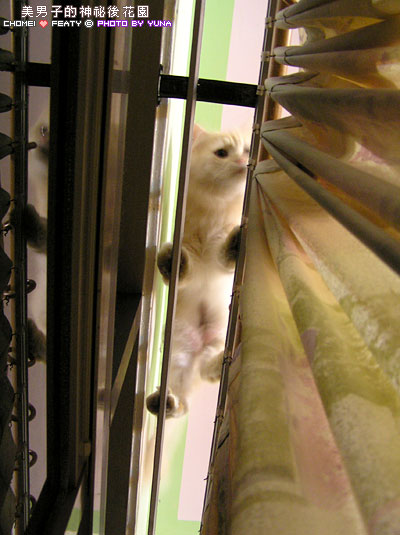 只要Y坐在電腦前不理他,他就會弄出噪音作勢要跳上去,這時候Y就會回頭看他