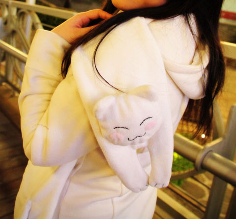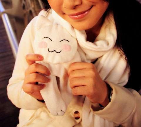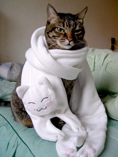 上次老妹就把長貓圍巾(那條是她的)圍出去拍照,效果還不錯的樣子