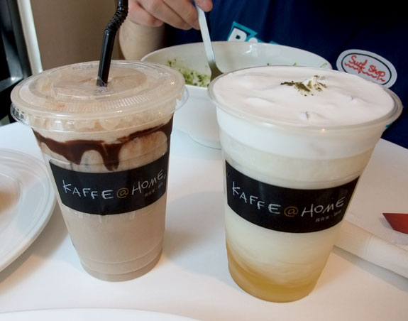 左:巧克力香蕉牛奶 100元、右:奶霜綠茶 90元