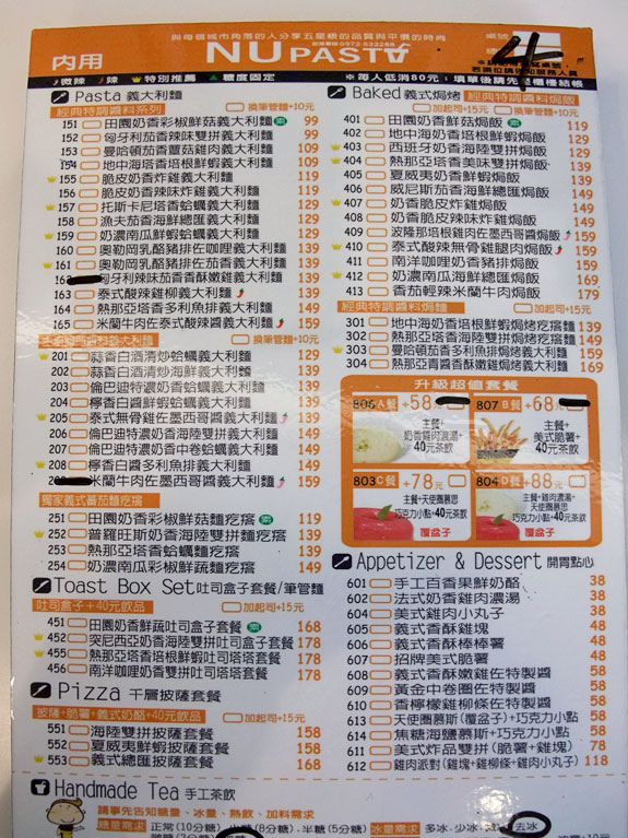 稍微估狗了一下發現是間連鎖平價義大利麵,且菜單頗豐富