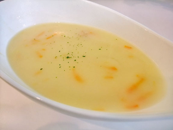 上菜速度快,點完餐沒多久A餐的濃湯就上桌了