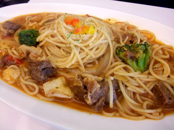 牛肉比較有嚼勁一點,卻也不算難咬,整盤麵吃起來牛味(?)十足
