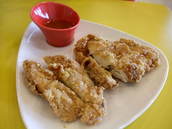使用雞胸的部分,雞排外皮炸的乾爽酥脆,雞肉仍保有肉汁
