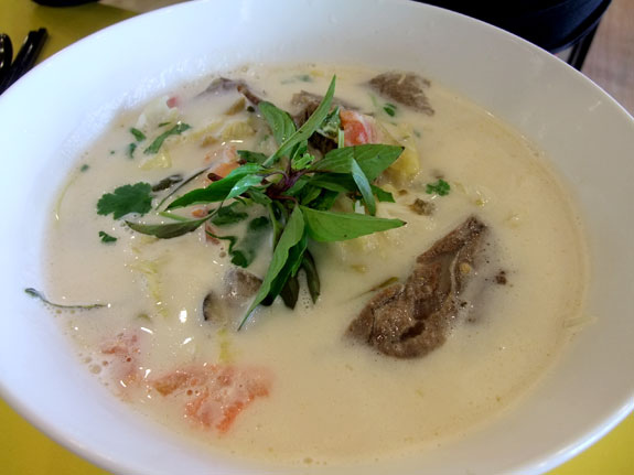 椰奶讓酸辣的湯頭變的柔和,辣度也降低許多