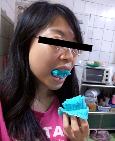 之前的藍色蜘蛛網咖哩燴飯所用的藍色色素還沒用完,所以拿來玩一下XD