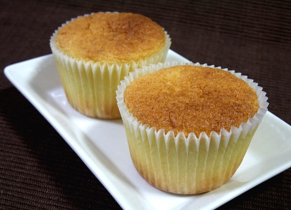 6.烤箱預熱180℃,烘烤12~13分鐘,用刺針插入蛋糕中心拔出,不沾麵糊就是烤熟了