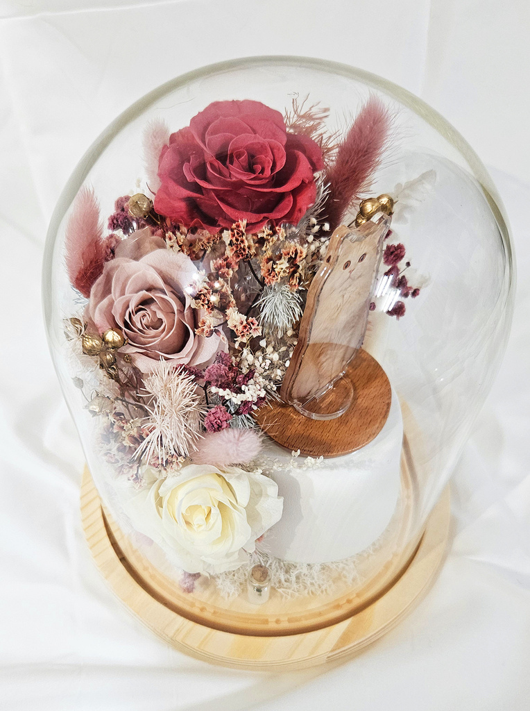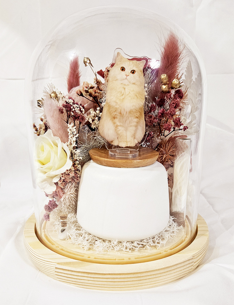 後來偶然發現骨灰永生花盅覺得美呆了,然而訂製價格讓我的手腳像剛出生的小馬一樣顫抖